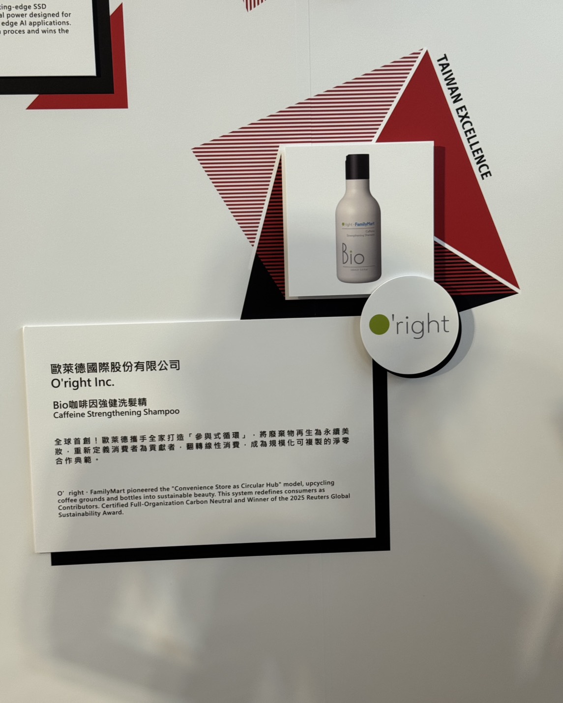 第34屆台灣精品獎得獎名單揭曉,歐萊德(O’right)與全家便利商店跨界合作的 Bio永續美妝系列傳來捷報!全系列五款產品全數榮獲台灣精品獎肯定,其中 「Bio咖啡因強健洗髮精」更從眾多參賽產品中脫穎而出,奪下銀質獎殊榮。這不僅是對產品力的肯定,更是對「參與式循環」永續創新的高度認可。