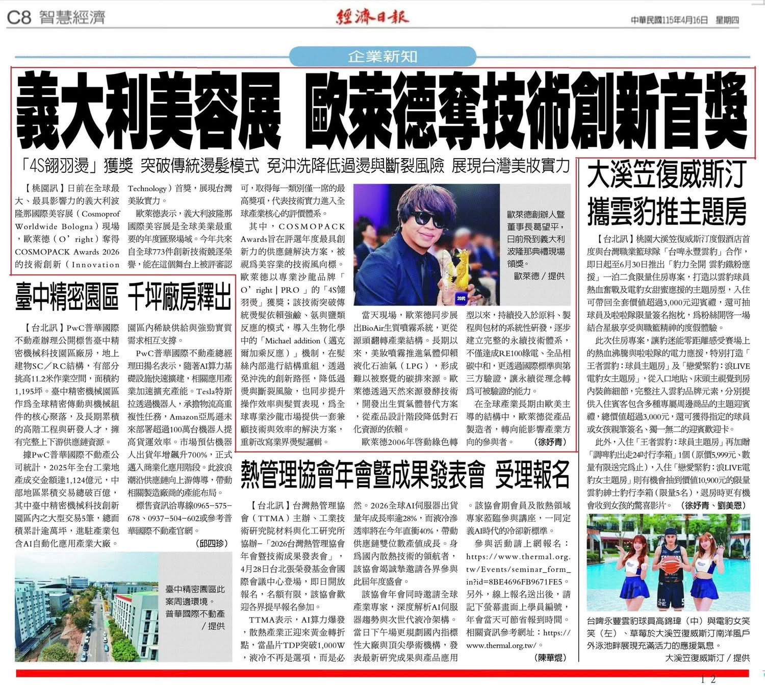新聞報導《經濟日報》全球最大美業舞台 歐萊德永續技術奪首獎