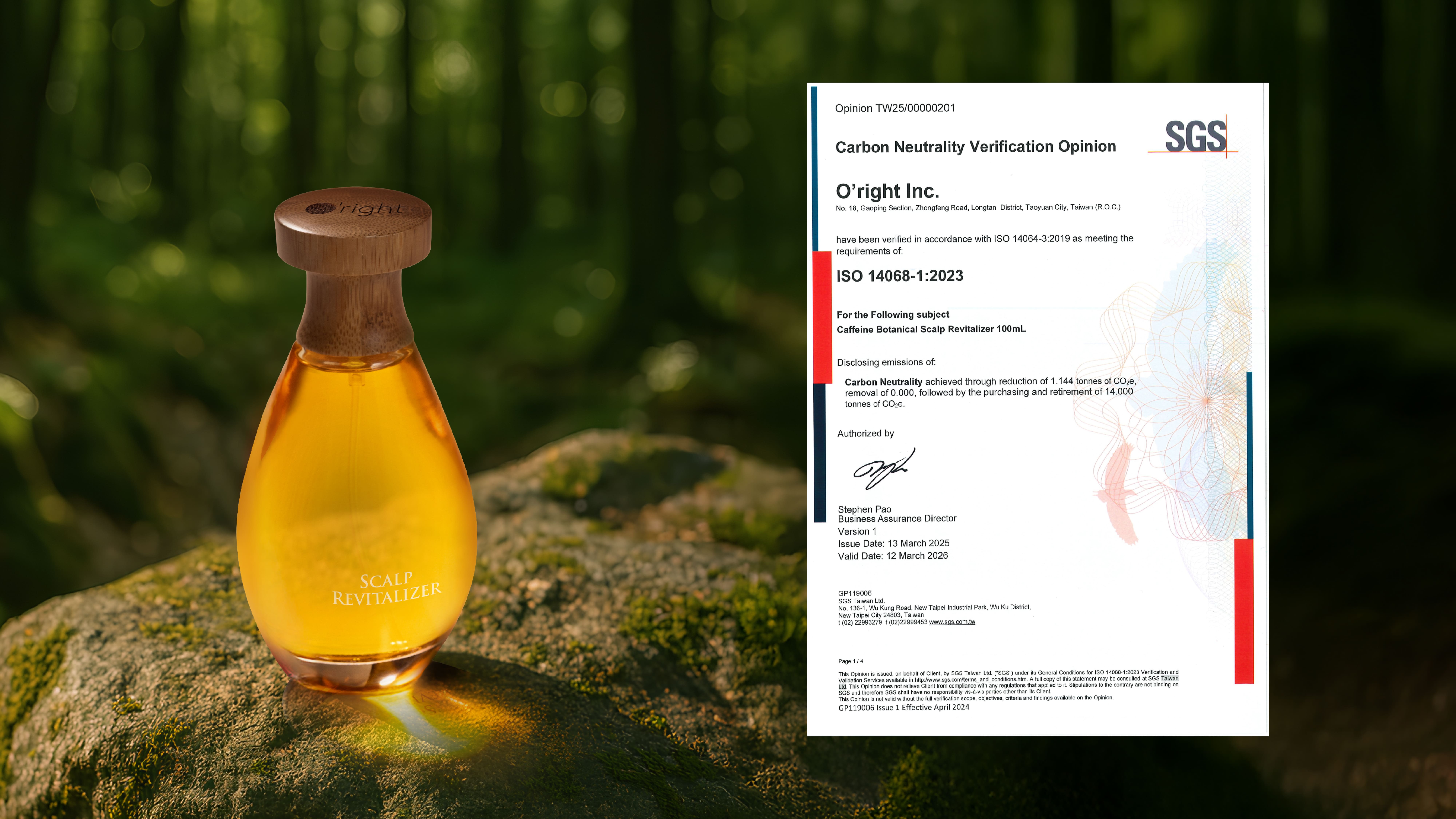 全球第一件符合國際最新碳中和標準的美妝產品誕生,歐萊德(O’right)宣布,旗下明星產品「咖啡因養髮液100ml 」通過ISO 14068-1:2023碳中和標準的第三方SGS查證,再次為美妝產業寫下新紀錄。
