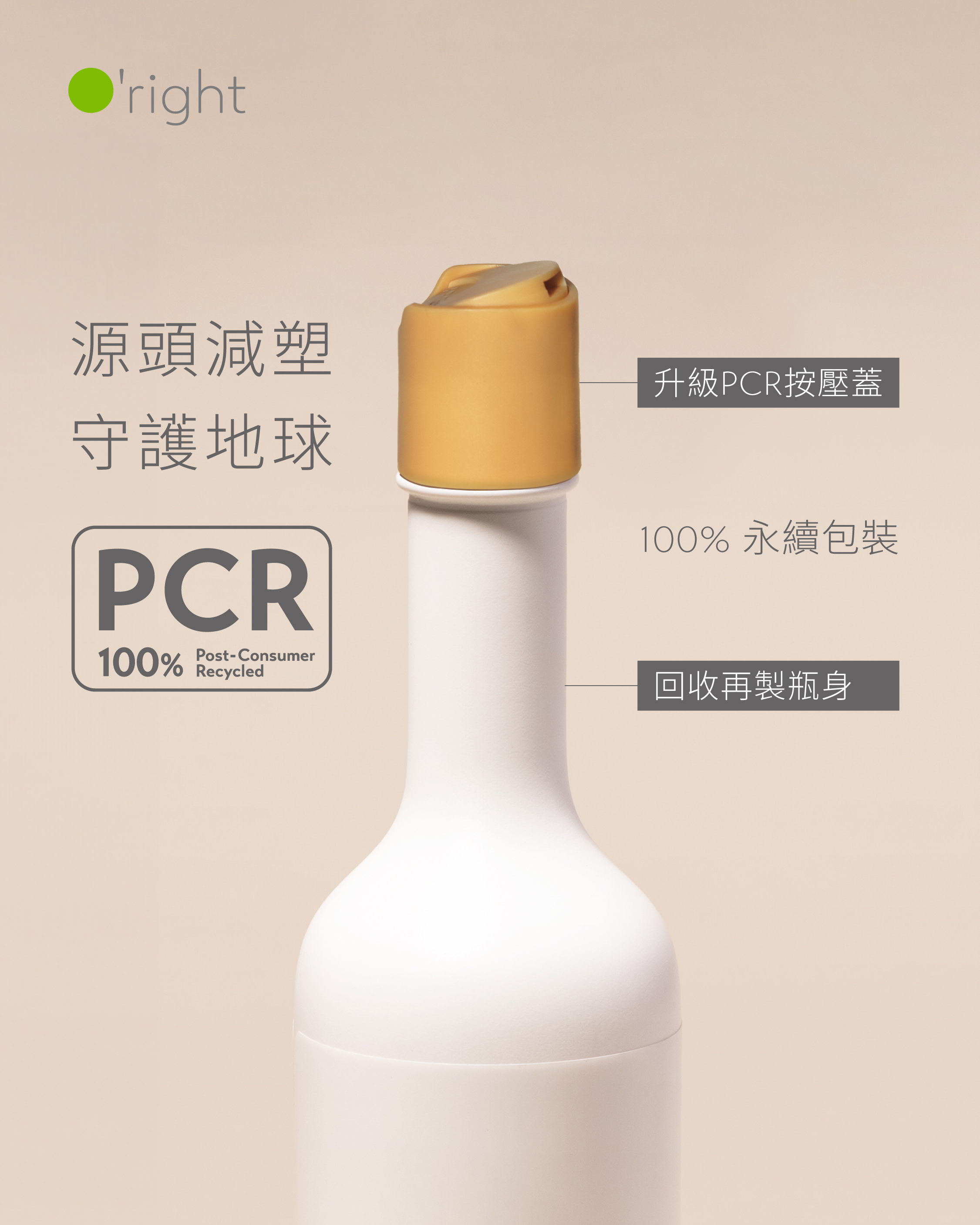 為了減少廢棄物與塑膠污染,歐萊德採用「PCR(Post-Consumer Recycled material,消費後再生塑膠)」,也就是杜絕石油製造的新塑膠,使用再製回收的塑料,從源頭開始減塑,成為第一個從內料到包裝都落實循環經濟的美妝品牌。