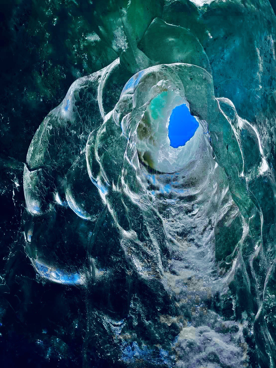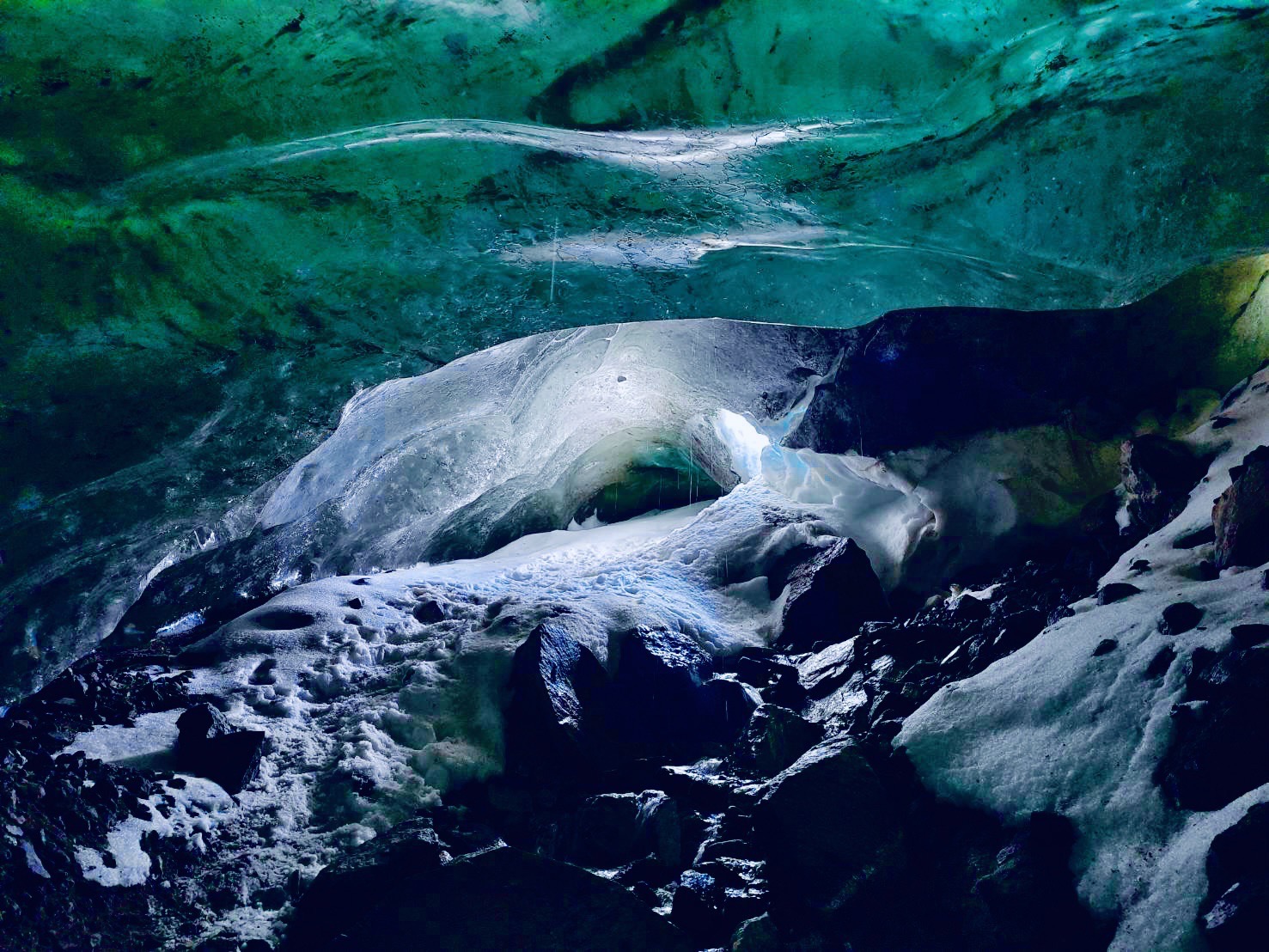 一般人可能會以為冰洞是極地都會有的特殊景觀,形成原因其實是夏季高溫導致冰川融水流入冰川裂縫,並於冰層底部沖刷,導致底下是空心的狀態。而氣候極端讓今天高溫融冰;明日低溫來襲冰層融水又凝固結成了冰,形成冰洞。