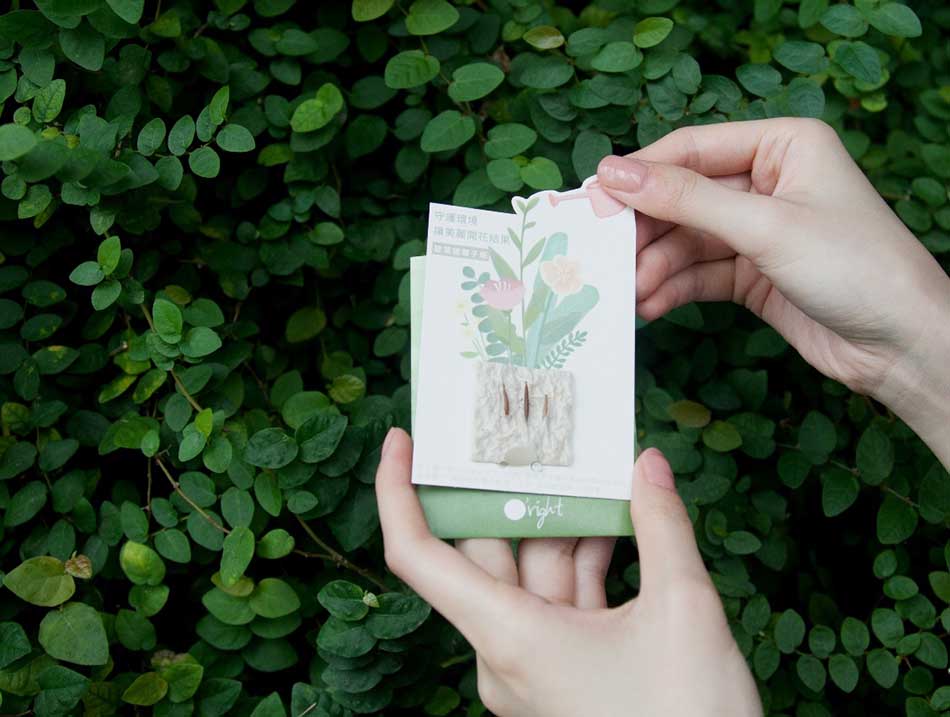 O’right歐萊德除了落實種樹林地認養及森林守護,更以實際的綠色行動,發揮綠色永續影響力,埋下綠色種子,種植下一座未來森林!即日起,至全台百貨體驗館或官方線上購物平台,凡消費即贈全台限量一萬組,採用甘蔗渣製成的手作植物種子紙,埋入土中可發芽長出花卉植物,讓種子回歸大地發芽成長,凝聚綠能量,共創永續美好未來。